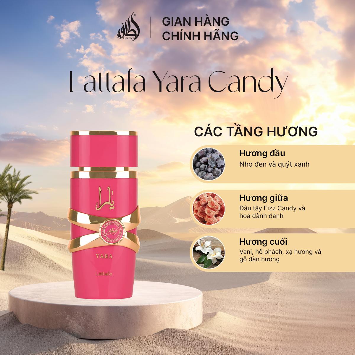 Nước hoa nữ Lattafa Yara Candy mùi hương trái cây ngọt ngào, tươi mới, ấm áp, quyến rũ chai 100ml